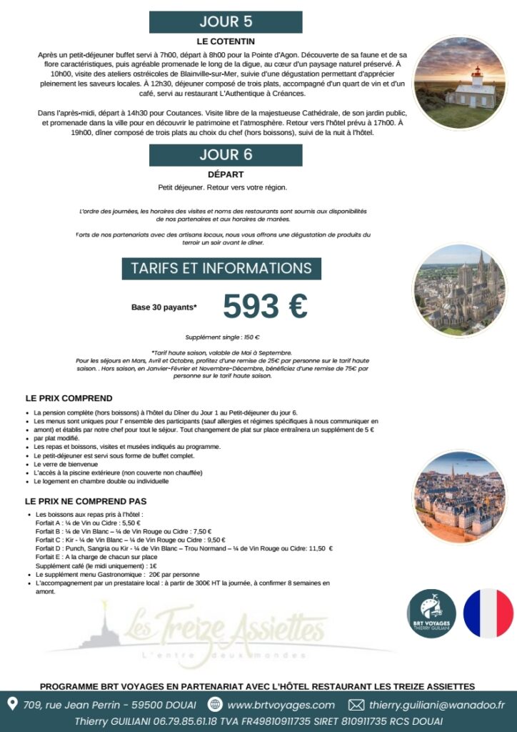 Pour toute information concernant les tarifs des programmes 2026, veuillez contacter Thierry au 06 79 85 61 18