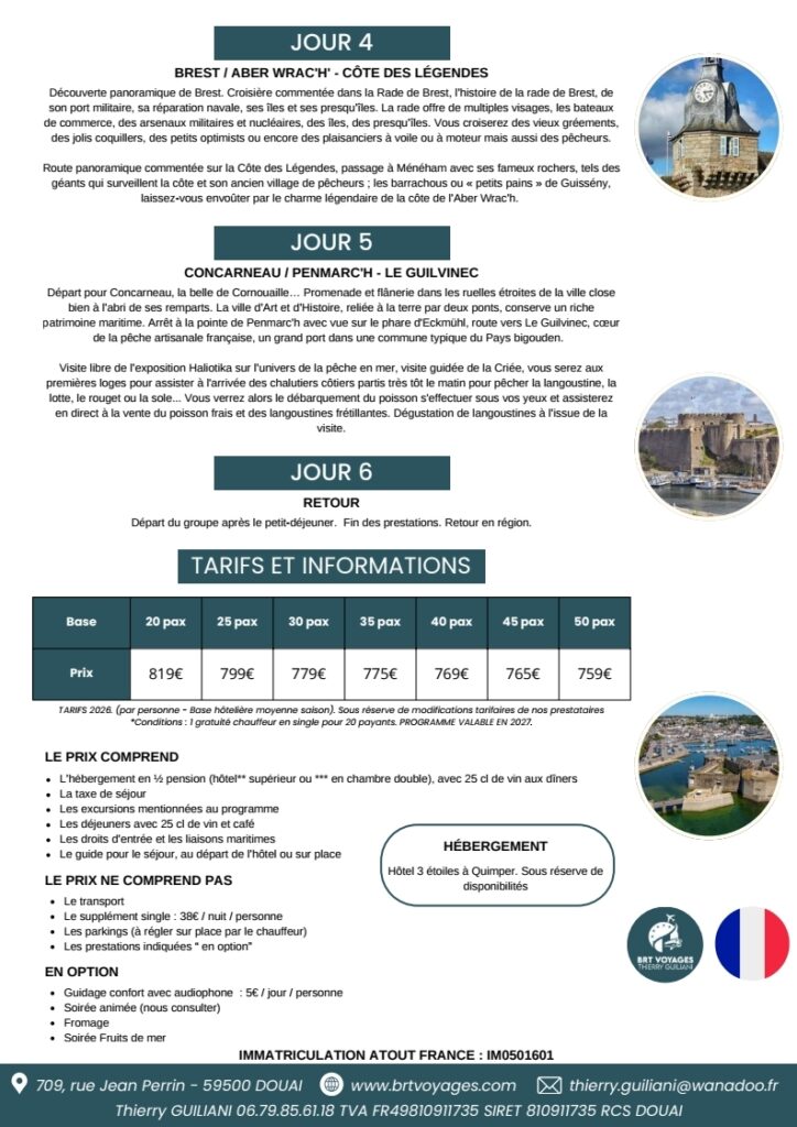 Pour toute information concernant les tarifs des programmes 2026, veuillez contacter Thierry au 06 79 85 61 18