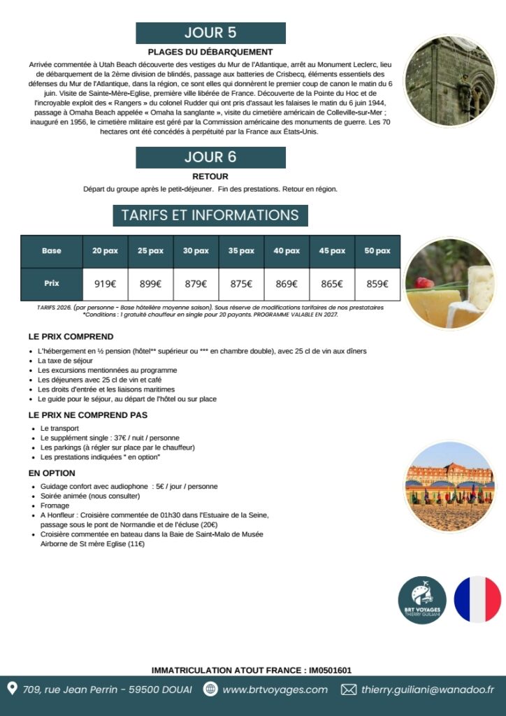 Pour toute information concernant les tarifs des programmes 2026, veuillez contacter Thierry au 06 79 85 61 18