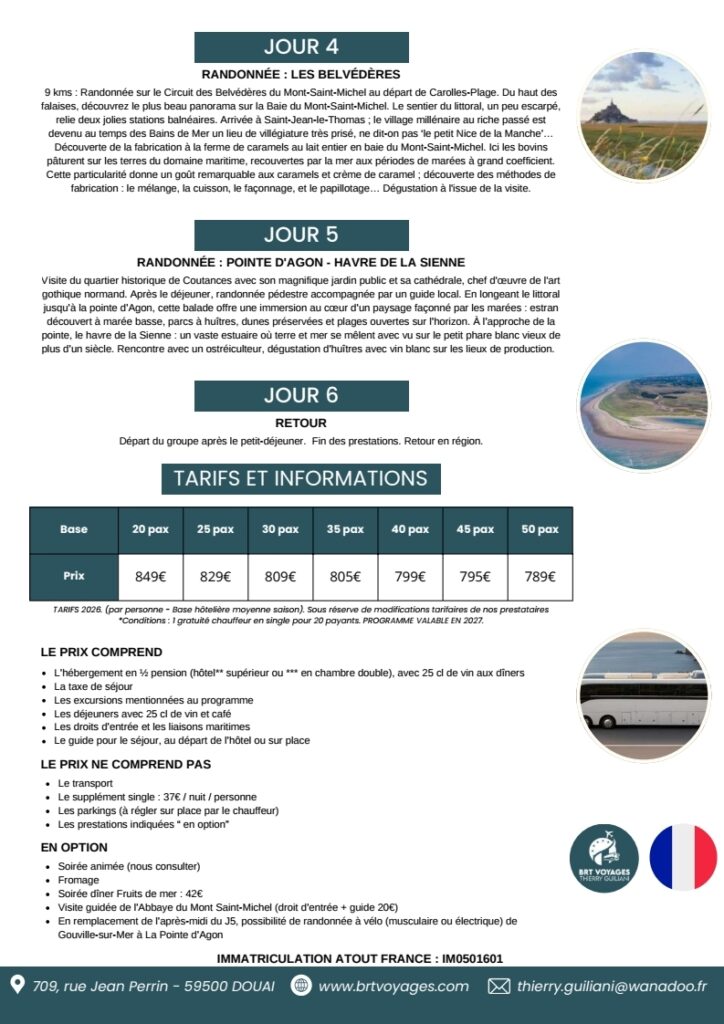 Pour toute information concernant les tarifs des programmes 2026, veuillez contacter Thierry au 06 79 85 61 18